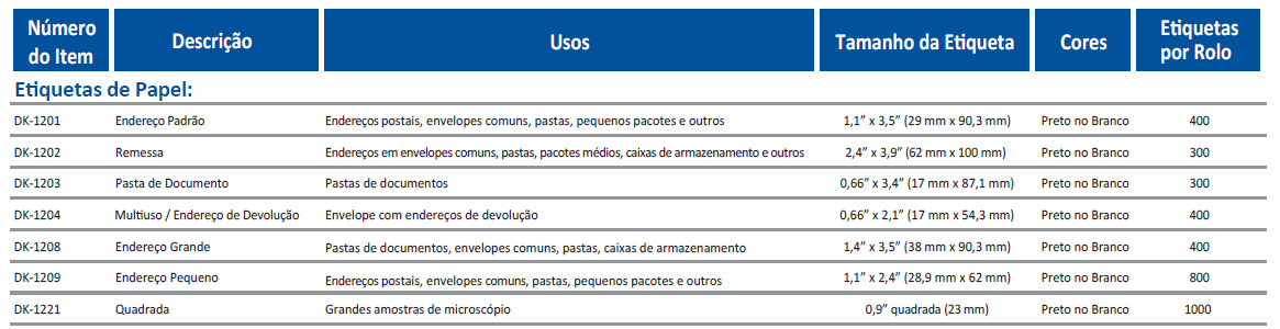 Imprime etiquetas pré-dimensionadas, fáceis de destacar, além de fitas em papel e em filme de comprimento contínuo da linha de fitas DK. O cortador automático permite imprimir banners e faixas de até 91,5 cm de comprimento, aproximadamente.